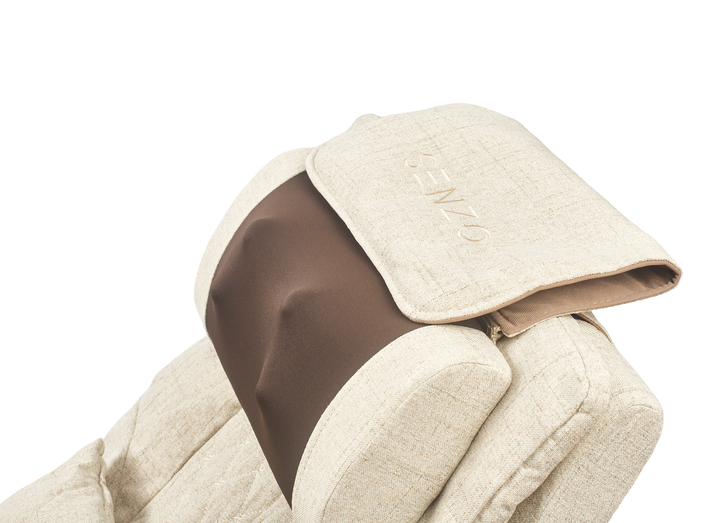 - Массажная подушка в области шеи легко регулируется по высоте с помощью застежки-липучки на обратной стороне кресла.