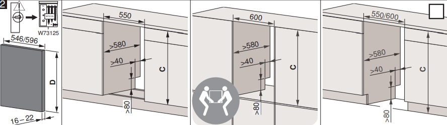 - Габариты ниши для встраивания ВхШхГ, мм: 786-902х600х580