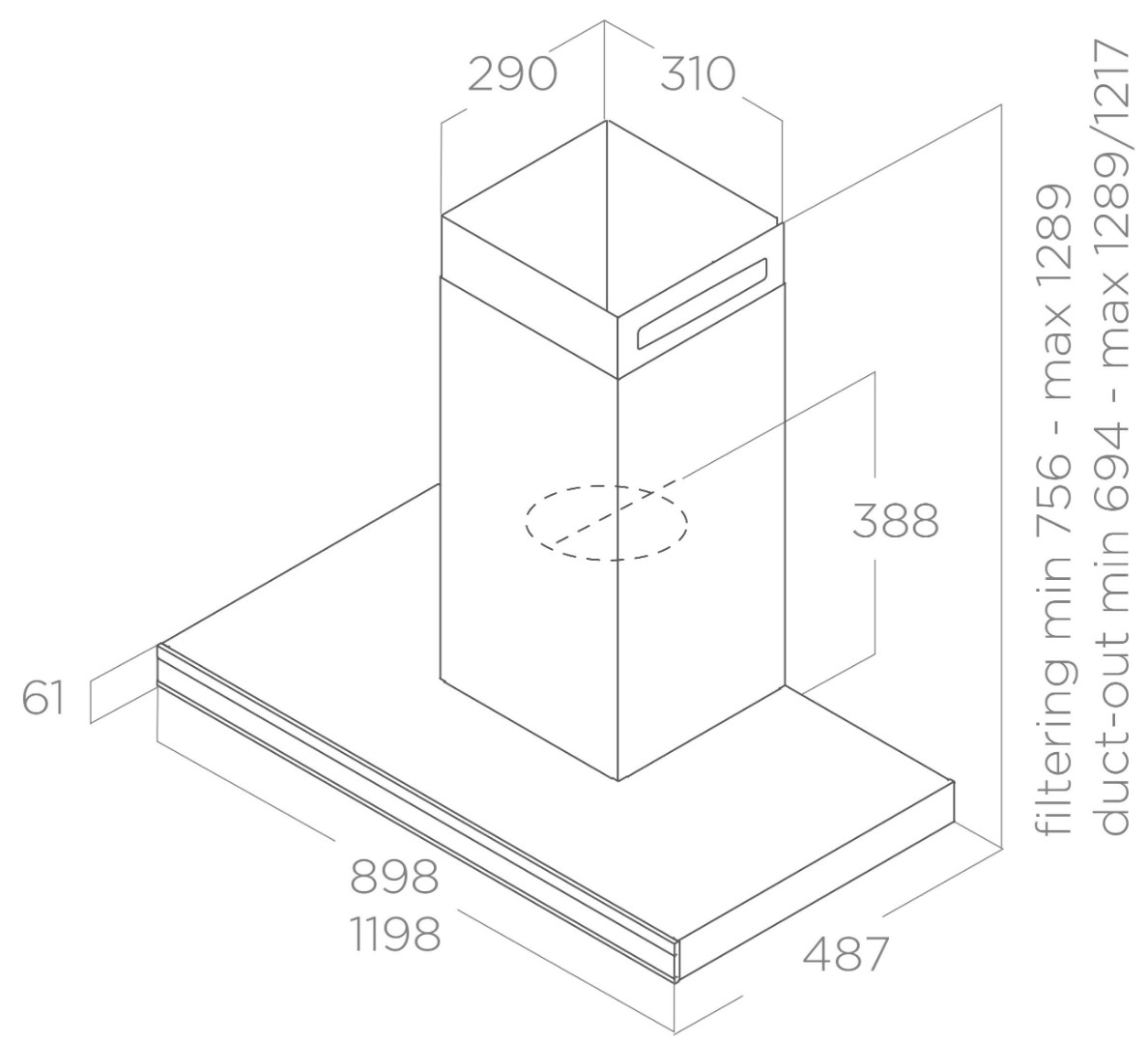 Поглощение паров и запахов происходит по всему периметру вытяжки, максимально повышая эффективность её работы. При этом элемент для отвода паров и запахов идеально скрыт панелью, что обеспечивает изделию безупречную эстетику.