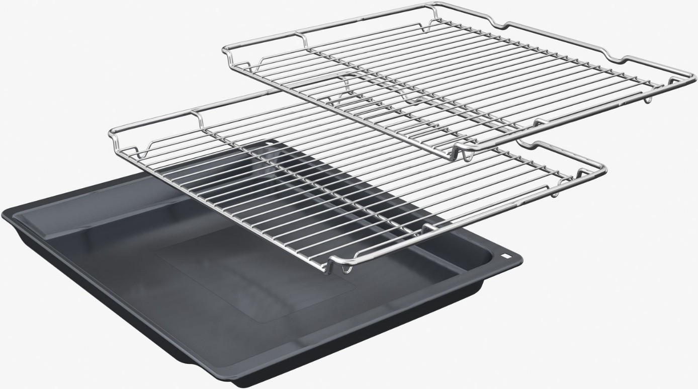 Комплектация 1 решетка, 1 универсальный противень, 1 комбинированная решетка, термощуп, телескопические направляющие