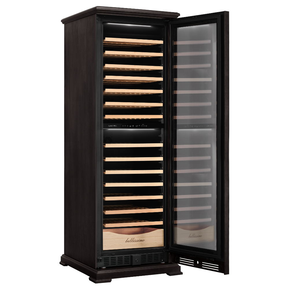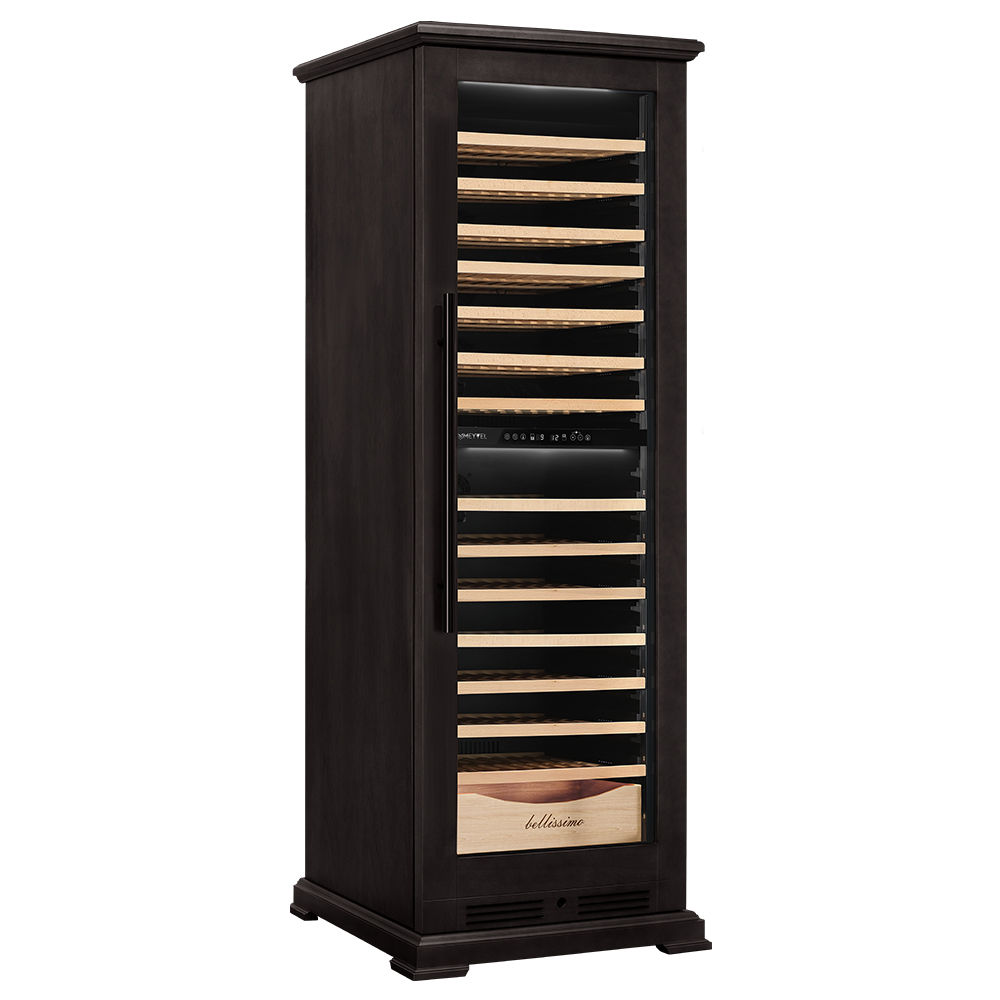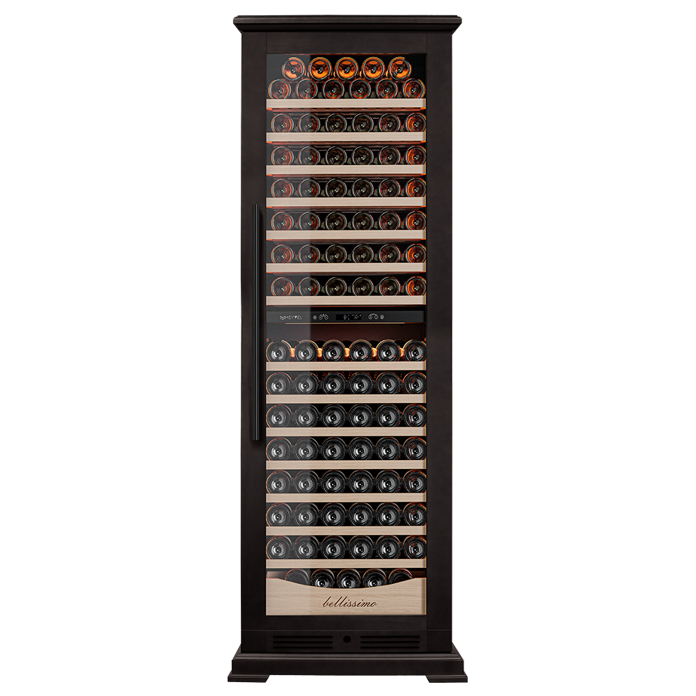 Винный шкаф предназначен для профессионального и длительного хранения различных сортов вин (до 174 бутылок типа Бордо). Он так же оснащен дверью с защитой от ультрафиолетовых лучей и поддерживает влажность в диапазоне 60-80%, как в настоящем винном погребе. Стальной корпус обшит натуральным буком, который выдерживает большие нагрузки и обладает красивой текстурой.