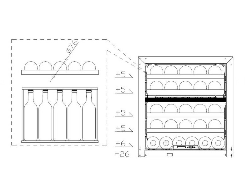 - Макс. кол-во бутылок (бордо), шт.: 26