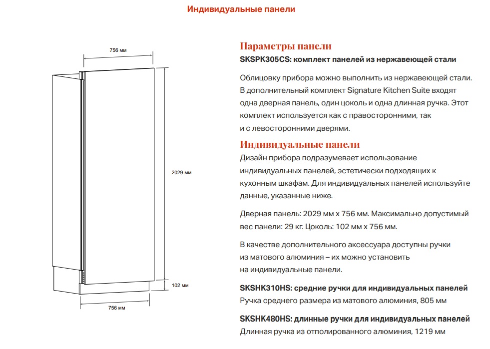 - Комплект боковых панелей при установке не заподлицо: SKSFK800CS